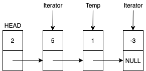 2. 3번째 노드에 새로운 포인터 Temp 생성 후 4번째 노드로 이동